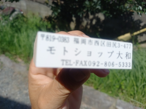 そして、九州大学への通学練習もOK♪ 最後に、伊都キャンパスから自宅マンションまでの帰宅練習も付き添います♪ こういう路上教習、ただ単に乗る練習では無く、希望に寄り添う内容は当店だけ♪ A様>初めてのバイク、夜に運転、とても上手でした(*^-^*) ーーーーーーーーーー それでは、タクト新車を入荷♪ ★車体価格163.000円(税別)★ 何千キロも走行した中古車で、相場130.000~158.000円しています。 それでしたら、壊れないしメーカー保証付きの新車が安心安全♪ いよいよ在庫わずか♪新車は希少★早い者勝ちです♪ ーーーーーーーーーー 皆様★いつも有難う御座います★ モトショップ大和「路上教習」は乗り方指導だけではない♪2025-09-23 at 13:13PM「アイドリングが安定しない」 「信号待ちでエンジンも止まる」という症状のジョルノAF70型。 「エンジンは問題なく掛かる」との事、それを聞けば原因は絞れます。 プラグ?バルブクリアランス?イグニッションコイル?カーボン噛み? 原因を見付けて修理完了、当店は沢山試乗します♪ 修理完了ですが、念には念を入れて大学生が使用するように乗ります。 朝8時前後・昼間・夕方に夜間、各20分走行4回行います。 それを2日間も行い、問題なければ連絡して納車。 当店は、その間は代車を貸し出し、不便をさせない様にしています。 ーーーーーーーーーー 18時から、通学練習の路上教習開始♪ 1時間以上、本当の意味でのバイク通学練習を行うのはモトショップ大和だけ♪ それは本当か????? 是非、他と比較が分かりやすいです♪ 直接、店に「講習時間と内容」を聞いてみて下さい(*^-^*) ーーーーーーーーーー 皆様★★いつも有難う御座います★★ 当店ならではのサービス★動画提供★危険予測運転2025-09-20 at 11:11AM九州大学生、9月に免許取得される方が沢山です♪ そんな本日「購入したら3年乘る」という大学生が御来店。 中古車か新車で悩まれており、故障無くて安心且つ、高く売れる新車に決定♪ タクト新車、納車時は乗れるか不安でしょう(;^_^A 当店だけが開催している「事故に遭わない運転練習」 2時間★無料★路上教習を開催(*^-^*) ーーーーーーーーーー 親御様からのリクエスト、大切に御教えさせていただきます♪ 御父様より「納車の日は居ないので、3年半の間、宜しくお願いします」と。 ★御任せ下さい★ 当店にしか出来ない、アフターサービスやアドバイス等が存在します♪ 御子様が卒業されるその日まで、大切にフォロー見守り致します♪ ーーーーーーーーーー それでは、領収書や御見積書を発行する際の店印鑑を新調♪