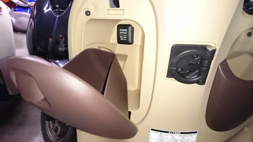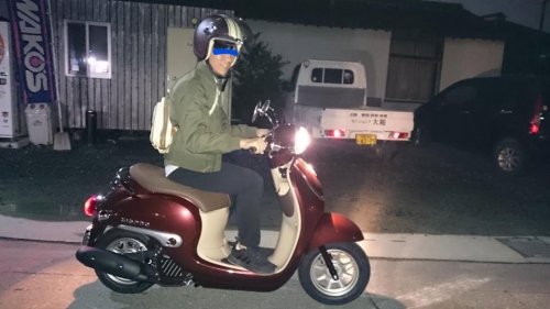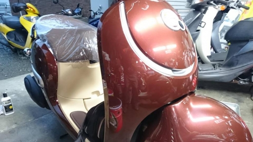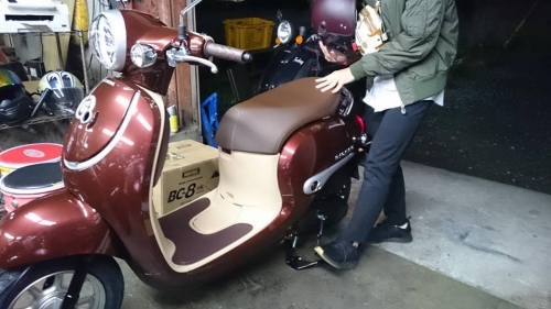 インナーポケット内部に、シガーソケットが差し込めますので、スマホを充電しながら走行可能です。 納車前整備を済ませ、御購入者様を御迎えに行きます。 店にて車両取り扱い方法の御説明&キックスタートやハンドルロック&シート開閉等の練習開始。