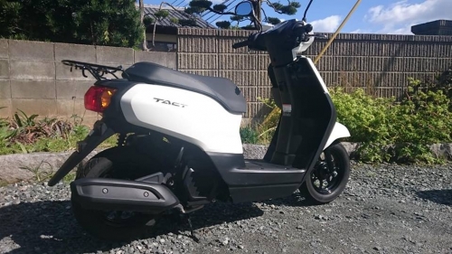 そしてホンダ・タクトAF75型 ワンオーナー車で綺麗な車体です。 ホワイト外装に黒い足回りが、引き締まって見えます。