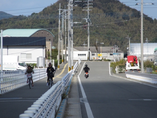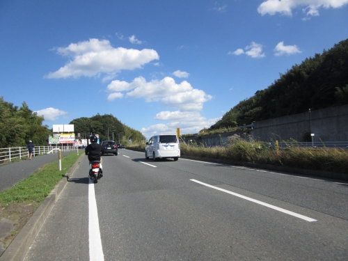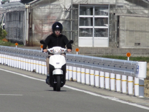 交通量の多い国道202号線へ行きます。 「ハンドルロックの方法はこうですよ」とバイク店前で教えるのみでは無く、実際に出掛けた先で停めてやらせてみます。 駐車方法も完全マスター出来たところで、ジュース休憩です。 ジュース代は、当店からのサービスです。