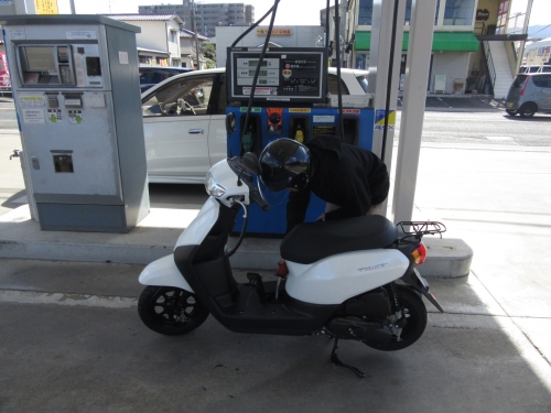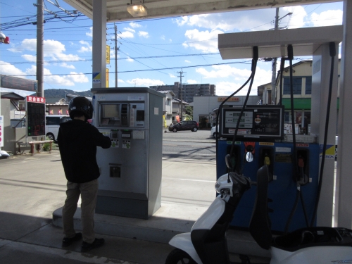 質疑応答後、ガソリン給油の練習です。 御金を何処に入れるのか???から始まります。 次は、ガソリンは何を選択したら良いのか???となります。 満タンになってボタボタと溢さない様、気を付けて注入しましょう。 最後に、大学から学校までの通学路を走行するプランも御座います。