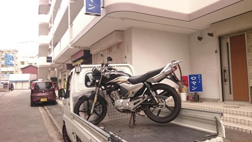 「バイクが止まってしまいました」との事でYBR125引き上げへ。