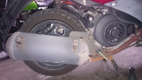 サービスで洗浄しグリスアップ。 パンク修理してホイール組付け、スムーズに走れる様になり「1人で納得」しました そして、西区泉より「自賠責保険加入」御依頼です。 「125cc免許は期間どれ位かね?」と聞かれ、世間話しながら自賠責保険継続更新手続き完了。 そうこうしていますと、九州大学1年生の御来店で「ヘッドライト球が切れました」と。 スタンレー球に新品交換して、5~10分で納車完了。 その後、店に御電話で「マフラーがうるさくなってしまいまして、修理は可能でしょうか?」と。 数分後、バリバリ!!!!!と御来店。 レッツ4やアドレスV50のマフラー、錆で穴が開きやすかったりしますね。 耐熱塗装してストックしていた純正マフラーと交換し、即納車。