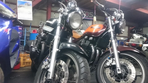 M様の御両親様>これから始まる娘様のバイク通学、是非安心されて下さい。 教習終了後も1人でビーノを運転し、通学路を走行練習されていた娘様をたまたま見掛けましたが「素晴らしい」の一言でした。 今回は車両御購入、真に有難う御座いました 販売車両として入荷は、人気のゼファーカイを2台♪(いわゆる前期後期それぞれ1台ずつ) ☆ゼッツー仕様が格好良いですよ☆ そして、4サイクルJOG-ZR(SA39J)カスタム車両も入荷♪ キタコGPRカーボンダウンR1マフラーやキタコ120Km/hメーター・キタコアンダーカウル他、多数カスタムの50ccスクーターも渋いですよ♪