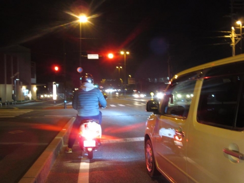 教習中、何か遭った場合は常に「教習する側」の責任重大です。 ですが、当店は夜間指導も経験は有りますので、夜間でもリクエストが有れば行います。 ↓夜中の交差点、行き交う車にばかり気を付けていてはいけません↓