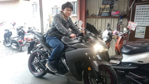 K様、2段階右折もバッチリマスターされましたね♪ 今回は当店にてバイク御購入、誠に有難う御座いました♪ 注文販売御依頼でした兵庫県出身A様、入荷しましたYZF-R25と初対面です 「希望の年式に色・走行距離とカスタム度合い、見事にカッケェ~すね!!」と御褒め、有難う御座います♪