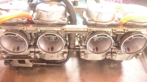 久々エンジン掛けますと、キャブからガソリン滲み。 原因は、キャブとキャブの連結部分。 ジョイント部分のOリングが経たっています。 新品が部品棚に有りましたので、組み替え。 ついでにキャブ洗浄完了。 キャブ連結部分&オーバーフローチェック。 異常無い事を確認、車体に取り付けます。 皆様、いつも有難う御座います✨ ではでは、ブログはこの辺で‼