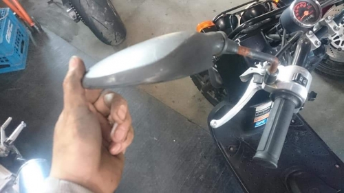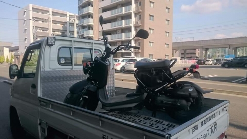 左右ミラーを交換してあげます。 中古ミラーですから、無料サービス。 九大学研都市駅近郊まで納車完了。 それでは、九大生のバーディー50や・・・。