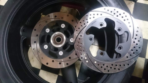 更に次は誰のバイクか? リアブレーキディスク、サンスターからサンスターへ変更。