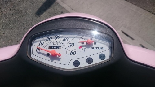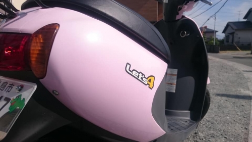 店に無い可愛いバイクを見付けてきて「納車時路上教習」2019-05-30 at 17:00PM先日、自転車で御来店の女の子。 「目立たない薄いピンク色か青・黒かブラウンかシルバーで何か有りますか?」と御相談です。 「車種は何か御決めですか?見た目の形が可愛いのが良いですか?」と聞きましても、大抵の来店者様は「決めていなかったし、分かりません」となります。 そこで、バイク屋さんが色々と相談に乗り、車種はレッツ4パレットかレッツ4と決まりました。 「来週には乗りたいです」との事で、期日までの時間は約10日です。 全国の業者オークション他から、急ぎ探します。 探す事4日・・・レッツ4で色は第一希望の薄いピンク色を入荷!!