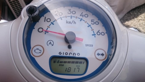 気を付けて、御帰り下さい ここで販売車両の御案内です!! ※2017年モデル※新車で購入し、何と走行距離1.800Kmのジョルノ(AF77) ★自動でエンジンを止めて燃費と環境に貢献「アイドリングストップ」機能付き★ ★パールジャスミンホワイトにブルーのラインがオシャレ★ ★1.800Kmしか走行していない上に、保管状態が良く極上ワンオーナー車両★ ★燃費1ℓ=80.0(30Km/h時)★ ★無転倒ですから、車体全体やマフラーカバーにコケ傷は無し★ ★男女問わず格好良いデザイン★ ★自賠責保険付きですよ★