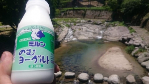 モーッ 走っては止まり、止まっては走り。 夏は毎年、家族で川遊びに来る所で休憩。