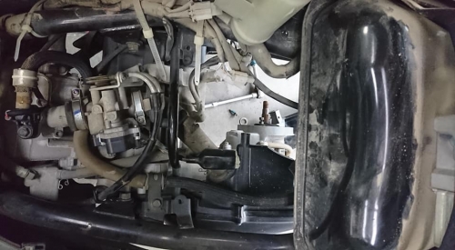 普段、盆暮れ彼岸以外でも御供えをちゃんとしなきゃいけないと考えます。 それでは業務の話を。 JOG「普通に走れますが、エンジンチェックランプ点灯していて・・・」と御相談です。 点滅回数チェック後、メットインボックスを外し点検・・・。