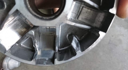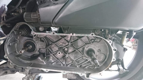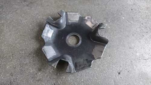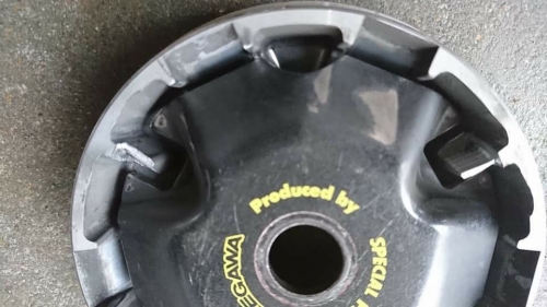 遅くて当たり前???ディオ1102019-08-06 at 23:54PMゼロ発進、出足が徒歩より遅いDio110(JF31)入庫。 「1年前、某バイク店でローラーやベルトを替えて貰いました」と。 エンジン掛けると、後輪が異様に速く回ります。 「クラッチ周りかな?」と駆動系を点検。 武川プーリーキット、何かが足りない。 スライドピース3個は何処? 衝撃緩和する意味でのスライドピース、無し? アチャ、かなり削れています。 1年前に組んで貰ったというウエイトローラー。 粉砕バラバラです。
