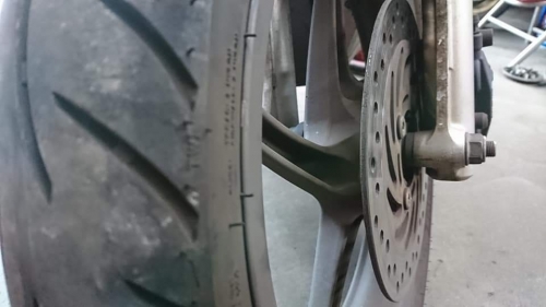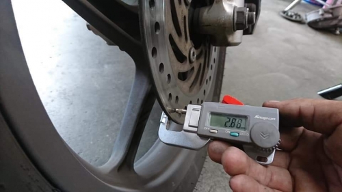 同時に組んだで有ろう強化ベルト。 亀裂が入っていました。 駆動系に関しては、現状報告しました。 そして、ふと目が止まった箇所。 何となく、ブレーキディスクが薄い様な気が。 ん??? ブレーキパッドも残量少な目。 使用限度3mmのディスク、厚みをチェック。 ブレーキディスクも交換した方が安全ですね。 しかしウエイトローラー、15g×6個仕様🤔 これでは、かなり不満が有る程の走りだったのでは? オーナー様「自分のDio110っすか?50cc原付より遅いっすよ‼️やっぱり、こんなモンと違いますよね?」と。 これではいけません、本来のディオ110のスペックに近付けたいと思います。 当店も、1つ1つ気を引き締めてまいります。 皆様、いつも有難う御座います🙇 ではでは、残業に戻ります。 0 コメント : コメントを書く :
