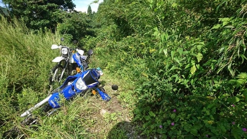 行く先が険しい時、バイクを降りて下見。 人車一体、バランスが大切ですね。 道なき道を進みます。 「オンロードは走れても、オフロードは駄目な人は意外と多いよ」と聞きます。 私、例外無くズコーッ!!! 雑木林のトゲが沢山有り、痛い痛い(^^) 川で休憩、冷たい。 押すなよ押すなよ・・・絶対に押すなよ~ 今日の手柄、草は持って帰ります🤔 皆様、いつも有難う御座います✨ 0 コメント : コメントを書く :