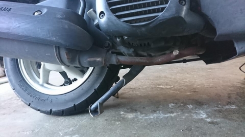 走行中に火花散らしてカーブでガリガリ???2020-02-23 at 17:17PMたまに見掛ける「センタースタンドがグラグラ」している原付スクーター。 4サイクルジョグやビーノ・2サイクルDioやジョルノ等、意外と多い症状ですね。