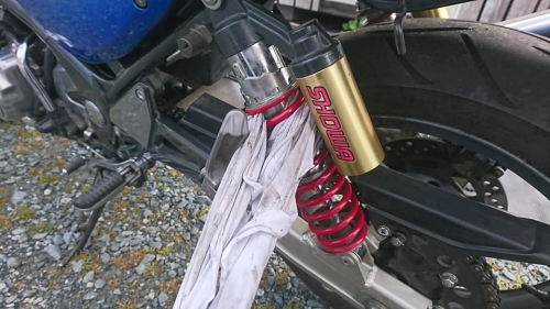 洗車して綺麗にします。 理想の1台を全国から探す際、サスペンションは格安社外品では無くSHOWA製は拘り所。 ノジマフルエキマフラー、良い音しますね😌