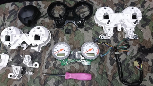 水曜定休では無く通常営業2020-03-18 at 20:45PM本日は水曜定休日では無く「通常営業」です★ キレイなVTR250、割れているメーターを直します。
