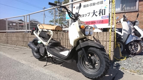 モトショップ大和「路上教習」は近所を乗るだけ???2020-03-25 at 17:17PM●●●本日3月25日(水)は通常営業です●●● ーーーーーーーーーーーーーー 「あの~原付が欲しいのですが・・・」と御来店の九州大学生。 ビーノかジョルノが欲しかったのが、店の奥に佇むズーマーに気に入った模様。 御客様「このズーマーは販売しているのですか?」 私 「こちらのズーマーはホームページに販売在庫車両・掲載前なのです」 御客様「コレ・・・良いですね」と仰っていただき、売約となりました。 前後タイヤに駆動系他、プラグやオイル新品交換整備します。 シートは特注品で張り替えました😀 リクエストされましたので、納車時「無料・路上教習」開催です🎵