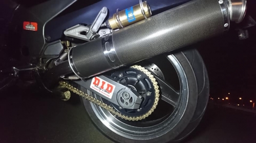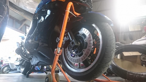子供達、素手で捕まえるとは・・・危ない。 この辺、昔スッポンの養殖場が有りまして、結構川に居ます。 ーーーーーーーーーーーーー ではZZ-R1100を取り掛かります。 タイヤはミシュラン・パイロットパワー2CT ゴールドチェーンにブラックスプロケットはオーナー様の希望。 チェーンはDIDを選択させていただき、ハブダンパーも新品交換。