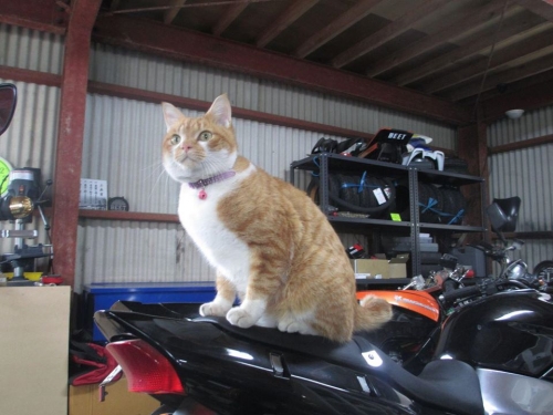 私のバイクの上が御気に入り。