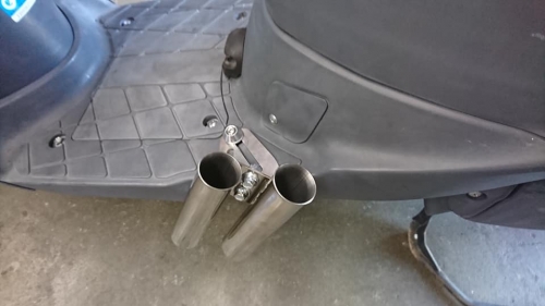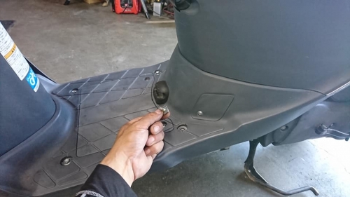 原付で釣りに行きたいんだけど・・・2020-06-27 at 18:18PM「あまり重くない原付で釣りに行きたい」との御相談。 50cc原付の中で、比較的取り回しやすいのはレッツ4と考えます。 釣りに行かれるので有れば、レッツ4対応品のロッドホルダー装着です。 足元のボルト1本抜き、ロングボルト使用して取付け完了。 「釣り竿を差したら、この位がベストかな」と、角度を微調整します。 これで、竿2本差せます😀(運転時リールは極力外されて下さい)