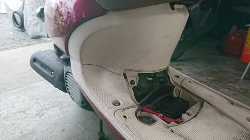 路上教習を受けて以降「無事故です」2020-07-15 at 10:10AMSV400S、依頼分完了後の試乗へ。 トップブリッジ裏側でハンドルを固定するボルト2本が付いていませんでしたので、適当なボルトでガッチリ止めています。 ーーーーーーーーーーーーー それでは、九州大学生N様のビーノ修理依頼分を。 モトショップ大和で中古ビーノ購入して4年。 ーーーーーーーーーーーーー 九大伊都キャンパス近郊、当時モトショップ大和だけが実施していた「無料★路上教習」を受講され、これまで無事故で来れたのは、非常に嬉しい限りです😀 ーーーーーーーーーーーーー 雨降り時に調子が悪くなった原因は点火系。