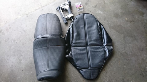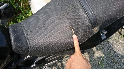 そして、九大生O様に去年10月御購入いただいたYZF-R25点検。 梅雨明けと同時に猛暑、皆様熱中症には気を付けて運転されて下さい😬 ーーーーーーーーーーーーー モトショップ大和ザンザス、シート表皮は好んでゼファー400用です。 中古表皮に張り替えて7年、とうとう破れました。 このディンプル滑り止めが、私にはシックリきてました。