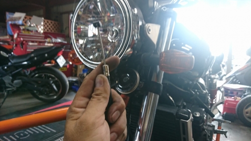フロント側も同様。 フューエルタンクが空気味でしたので、プラグ交換は楽でしたがサービスでガソリン給油。 そして夜、御自宅まで納車へ。 M様>差し入れまで頂き、感謝しています。 ーーーーーーーーーーーーー では、不動修理でFTR引き上げへ。