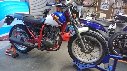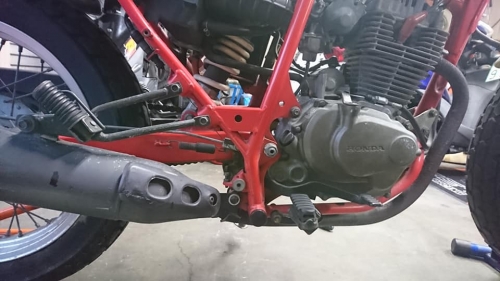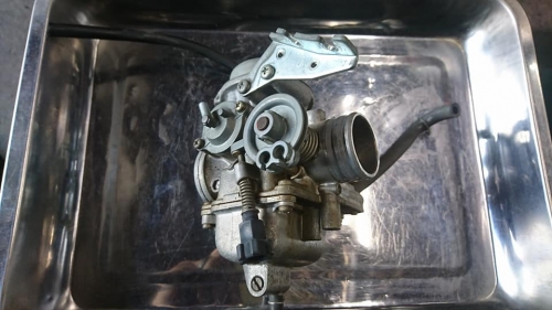 1台1台取り掛かっていますので、納車まで今暫く御待ち下さい。 FTR223「放置によるエンジン不動・修理メンテナンス」 先ず、エアーの抜けている前後タイヤを調整。 キャブレターは分解洗浄ですが、その前にジ~ッと観察します。 「私のバイク、いったい何がどうなのか?」 そんな事を御説明する為でも有るモトショップ大和ブログです。 んん??? エンジン下部、フレームからボルトが抜けていて有りませんね。 圧縮などを計り、いよいよ取り掛かります。 では、キャブレターをキレイにします。