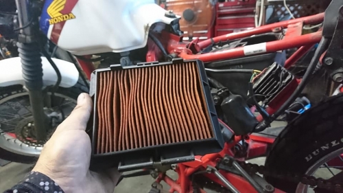 燃料が通る通路という通路、全て貫通させます。 洗浄後、1つ1つ組み上げます。 エアーフィルターも清掃します。