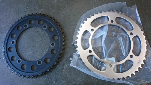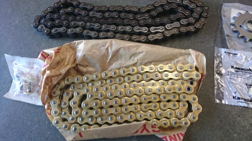 8月15日2020-08-15 at 10:00AM九大生バリオス2、チェーン交換時期ですので取り掛かります。 チェーンはDIDゴールド 前後スプロケットも同時交換します。