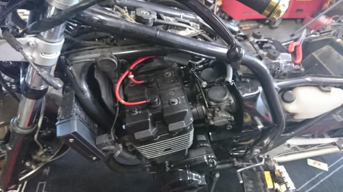 ZRX4002020-08-31 at 20:00PMZRX400不動修理です。 ガソリンタンクを外します。 フレームとハーネスの間、ETCスリムインジケーターが紛れていました。
