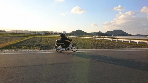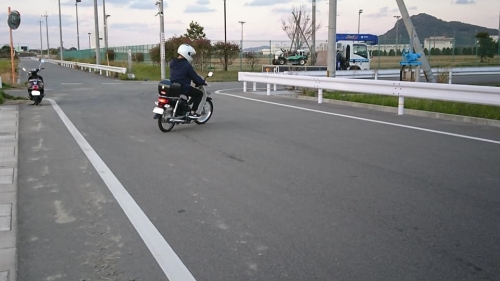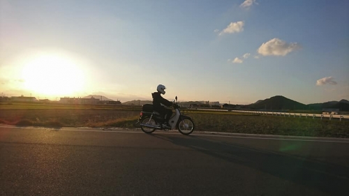 エンジン掛かる様にし、オイルやリアタイヤ・NGKプラグ交換後に試乗。 無事、納車となりました。 ーーーーーーーーーーーーー それでは、鹿児島県より御越しの九州大学生。 初めてのバイク・初めての走行練習を行います。 モトショップ大和「路上教習」は、御1人御1人の技量ペース配分を大切にしています。 「その辺を走れば終わりです」というものでは無く、安心安全をマスター出来ると思います。 夕焼けが眩しいという事は、四輪車やトラック・歩行者をどう意識すべきか? 1速2速3速4速のトルクや加減速、全てを身体で感じて覚えます🎵