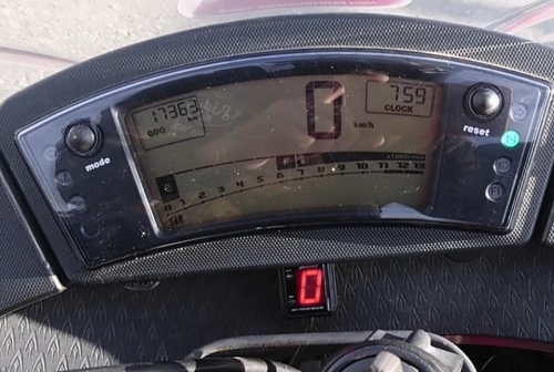 リアサスが特徴的な位置ですね。 走行距離17.363Kmです🎵 「今、何速だったっけ?」という事、有りますよね? シフトインジケーターが有って便利ですよ🎵(ニュートラル時はゼロ表示)