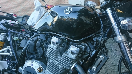 キーオンでガソリンがビシャビシャ漏れる2020-12-10 at 09:10AM師走でバタバタしている時こそ、交通事故には気を付けたいものです。 そんなある日、私も車を運転してバタバタ西へ東へ。 急ぎ昼ご飯は、最近はまっている牡蠣フライ辛口カレーライス。 そこへ電話が有り「今、モトショップ大和に来ています」と。 遠隔セキュリティーカメラ数台完備、博多より自店をスマホで確認。 ヤマハXJR1300です。
