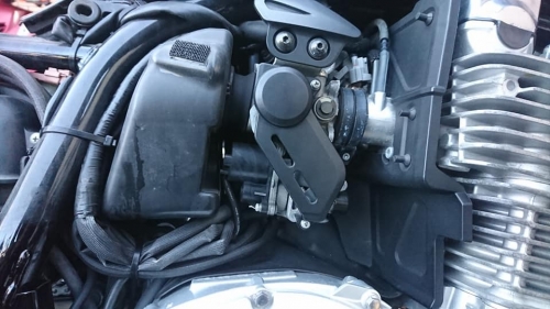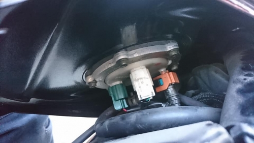 インジェクションXJR「キーオンでガソリンが漏れてきます」との事。 ポンプ周り等を点検、漏れを止めます。