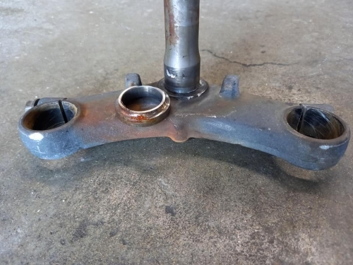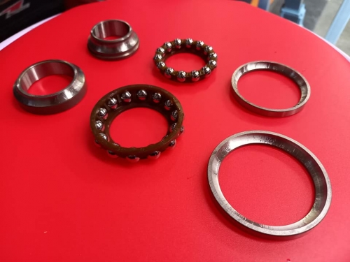 楽しく徘徊後、店オープン😀 ーーーーーーーーーーーーー 「ハンドルが左右に振られる」オートバイ修理。 ステムベアリング下側が錆びており、普段は屋外保管かな? では、レースやシールも抜き取ります。