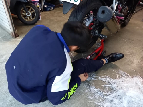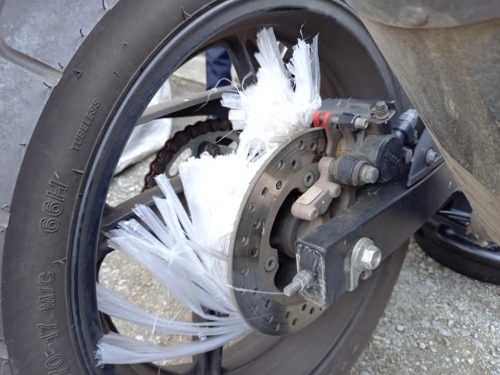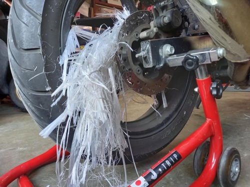 オーナー様、大変喜ばれて何よりでした😀 ーーーーーーーーーーーーー 定期点検で入庫、九大生CBR250R。 後輪にビニールひもが絡まっております。 これは、定期点検ならぬ「緊急点検」ですね。 巻き付いているのを、1つ1つ千切ります。 学生さんの親代わりでは無いですが「気を付けなさいよ」とアドバイス。 作業してもしても、なかなか終わりません。 本当、リアロックして転倒事故にならず良かった。 まだまだ巻き付いています。