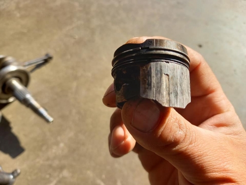 アレしてコレして・・・2021-02-25 at 09:00AM女子大生より「エンジンが止まりました」との修理依頼。 4サイクルSA26Jビーノ、エンジンを開けます。 ピストンに傷、使わない部品を並べて撮影。
