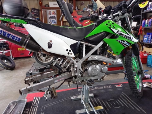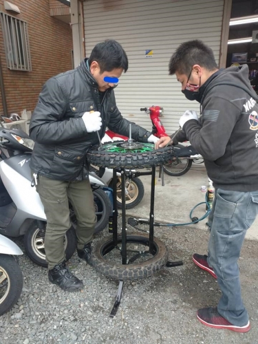 破れているシートも綺麗にします。 そうこうしていますと、XTZやKLXの御来店です。 タイヤはIRC、チューブはミシュラン強化に交換。