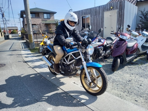 🎵ウキウキ🎵2021-03-11 at 09:44AM九大生U様VTR250納車です★ 跨ってウキウキ・テンションアップ🎵