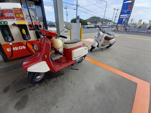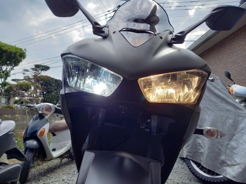 免許取得して直ぐ★初めてドキドキ走行★2021-03-24 at 11:22AM福岡市早良区より御越しの女子Y様。 HONDA50thアニバーサリー・ジュリオ納車です🎵 昨日免許取得したばかりですので、多少の不安も有ります。 しかし、そこは御任せ下さい。 ーーーーーーーーーーーーー 初めての方でも、バイクが扱いやすい様に「小細工」をしています。 コレをすると不思議、発進や加速減速の不安定が違います。 ーーーーーーーーーーーーー バイクを扱え、いよいよ通学デビュー🎵路上教習終了🎵 いいえ、扱える様になった後に「危険」が潜んでいます。 モトショップ大和の路上教習は、そこに必要性を感じます。 広い幹線道路で車線変更他、二段階右折や見通しの悪い住宅街も練習。 しかしY様、Uターンもスイスイで上手😀 2サイクルジュリオと4サイクルビーノを乗り比べ。 交差点の信号が赤から青になった際、気を配るべき事をアドバイス。 そして、セルフスタンドにてガソリン給油の練習です。 えっと・・・御金をどこに入れるの??? 真剣そのもの・・・こぼさない様に給油。 ★★★モトショップ大和★★★1時間・路上教習★★★ Y様、そしてY様の御家族皆様の「安心」に繋がれば幸いです。 今回はバイク御購入していただき、誠に有難う御座いました!! ーーーーーーーーーーーーー それでは、九州大学生のYZF-R25。 ヘッドライトをLED化、右側の純正と比較。