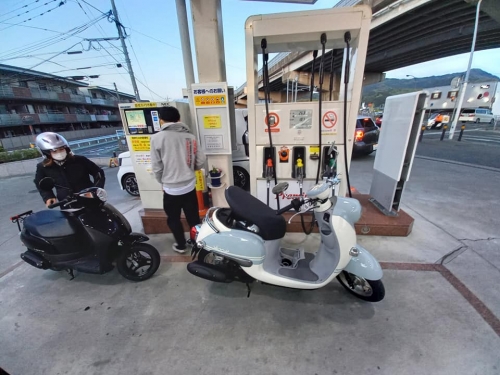 モトショップ大和「路上教習」は何回でも受講可能🎵2021-04-19 at 14:14PMバイク購入時の運転練習・路上教習。 「教習を受けた後日、1人で走るもまだ不安だな」 「学校へは行けたけど、都会の方は走れるかな」 「交通量の多い道路は、やっぱり怖いな」 ーーーーーーーーーーーーー モトショップ大和は、満足のいくまで路上教習をしております。 ですので「何度でも受講可能」です😀 また「ウチでバイク購入したら教えます」では有りません。 本当の意味で「安心安全」を、購入者様以外にも路上教習しています😀 この様なバイク販売店、九州大学近郊ではモトショップ大和だけ🎵 ーーーーーーーーーーーーー また、危険な夕方から夜間にかけて路上教習をする店も有りません。 安全に乗る練習ですので、敢えてリスクを教えるのも大切な事です。 ーーーーーーーーーーーーー それでは、九州大学生M様とS様2名の夜間・路上教習開始です。 夕日が眩しく、事故の多い時間帯です。 何故、事故が多いのかをアドバイスします。 それは、極めて簡単な理由ですが意外な事。 幹線道路、通勤帰りの車などがビュンビュン行き交っています。 ドキドキ緊張されていますので、緊張をほぐす工夫をします。 緊張で肩肘張ると運転しにくい為、リラックスを心掛けていただきます。 「布団がふっとんだ」なんてシャレ、誰も笑ってくれませんでしたが。 受講2回目のS様のリクエストを取り入れ、もう1度給油練習🎵 昼は暑くても夜は寒いのがバイク★M様へジャンパーを貸出し★ モトショップ大和は、九大伊都キャンパス前を練習して終了では有りません。 おやじギャグを聞かされ休憩、ドン・キホーテや九大学研都市駅辺りも走行。