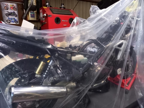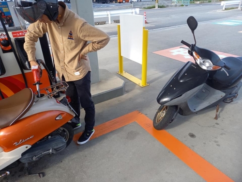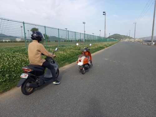 モトショップ大和「バイク練習」で安心🎵2021-04-25 at 18:47PMオートバイ御依頼分、1台1台取り掛かっております。 バリオス2は部品入荷待ち。 デリケートな内部、ホコリすらも入らない様に保管。 それでは、九州大学生N様2サイクルビーノを納車。 モトショップ大和ならではのプラン「路上教習」開催です😀 加速減速やUターン、直ぐに出来る様になります。 乗り方指導ついでに、2サイクルと4サイクルを乗り比べ🎵