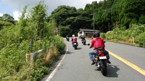 峠や海沿いをグネグネ走り回る。 極力、人と人の間隔をあける。