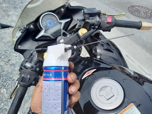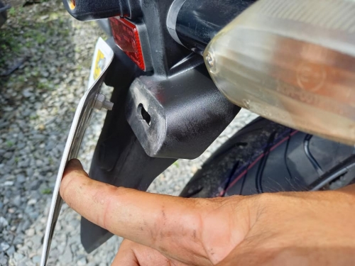 ほら、こんな不具合に気付けるのが拭き掃除の良い所。 走行中に紛失したら大変、ナンバープレートを固定します。 レバーやペダル他稼働部分には注油、運転がスムーズ快適。