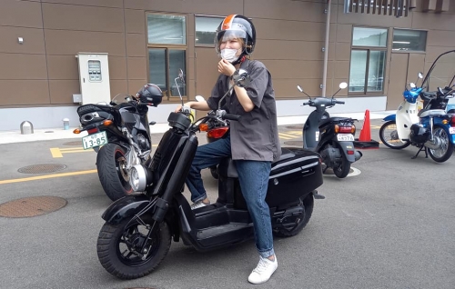 タイヤ新品で安心🎵 各消耗品も点検整備、写真を撮ります。 経過報告で、常にLINE連絡を行います。 専門用語を並べて御説明は伝わりにくいからこそ、画像を送る事は大切。 してもいない事柄を、あたかも済ませました的な表現は一切しません。 納車前試乗を距離20Km程、非常に快適です🎵 ーーーーーーーーーーーーー それでは、バイクに初めて乗るF様「乗り方講習会」です。 ヤマハVOX(SA31J)は、大柄な原付スクーターですので扱えるのか??? ーーーーーーーーーーーーー 「怖い怖い😱」と言いつつ、スロットルひねって走り出します。