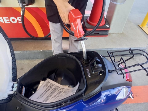 発進や加速を練習し、国道202号線を走ります。 ガソリン給油も難なくマスターされました。